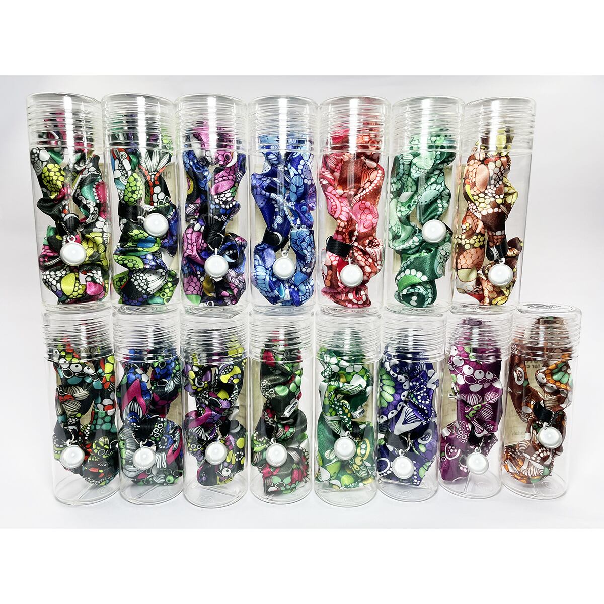 イラスト・テキスタイルデザイン作家「art peace」が手掛けるオリジナルテキスタイル【KURAGE】で製作した首飾りです。